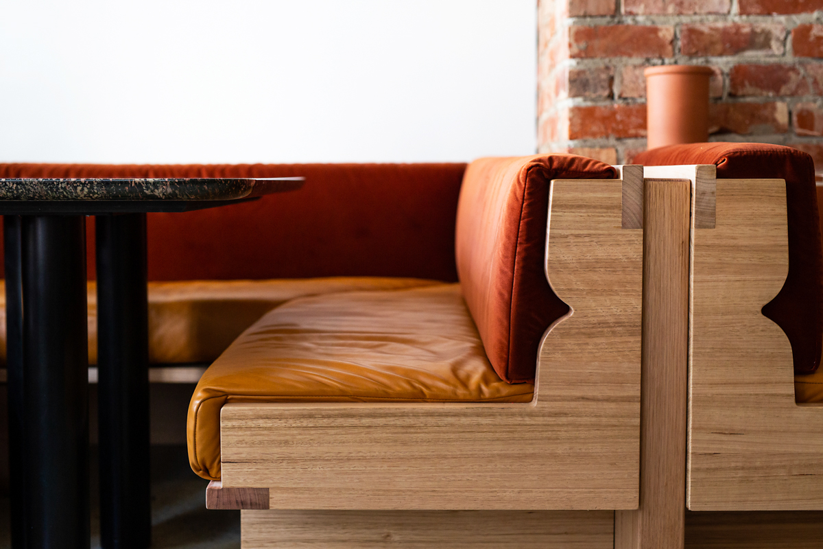 You can take the restaurant out of the country, but you can’t take the country of the restaurant. That’s certainly the case for Fino Vino, the new urban outpost of Fino, one of Barossa Valley’s best-loved restaurants. Designed by Studio Gram, the interior of Fino Vino showcases restaurateurs David Swain and Sharon Romeo’s pride in South Australia with local-made furniture and fittings and earthy, rusty tones, including Pelle’s Toledo Schnapps on the banquette seats.